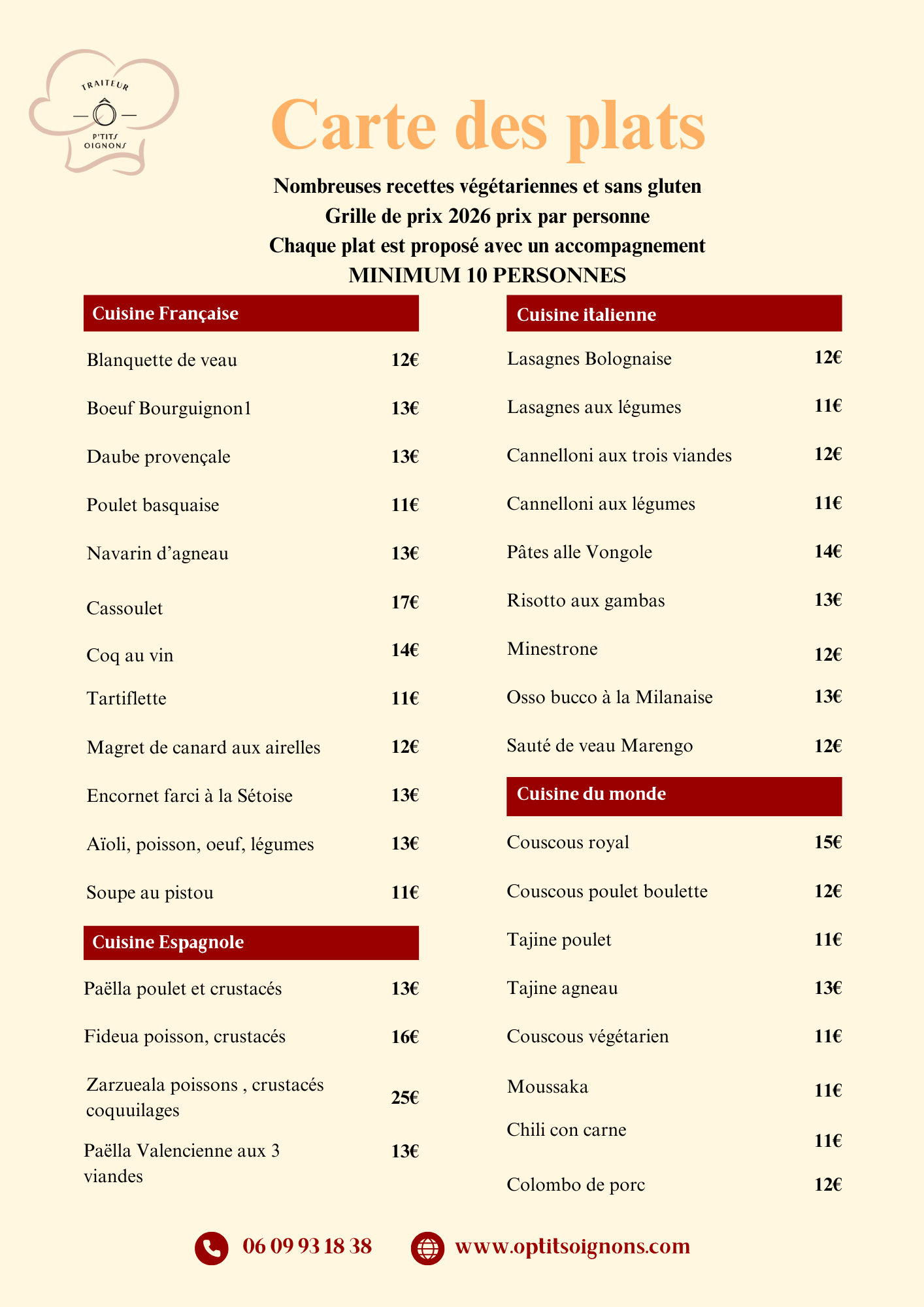 Contactez nous dès maintenant pour découvrir nos plats du moment !